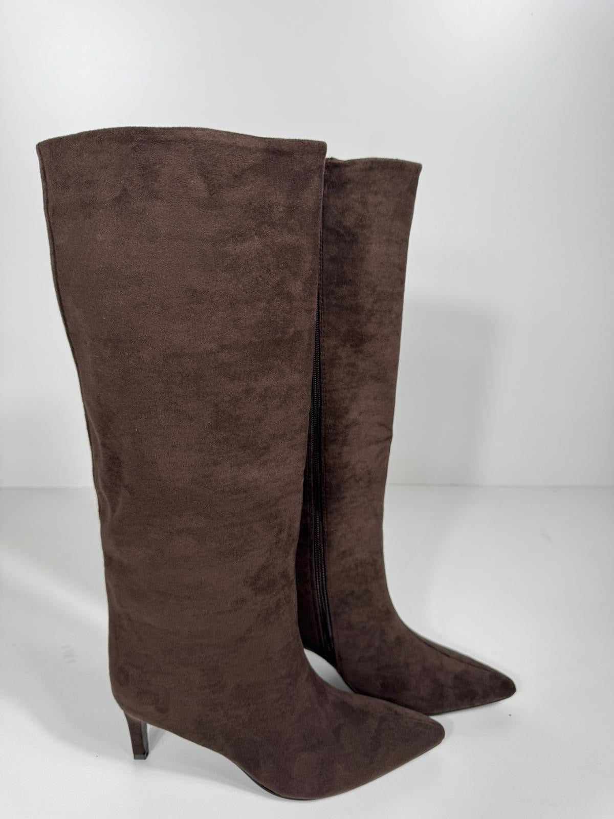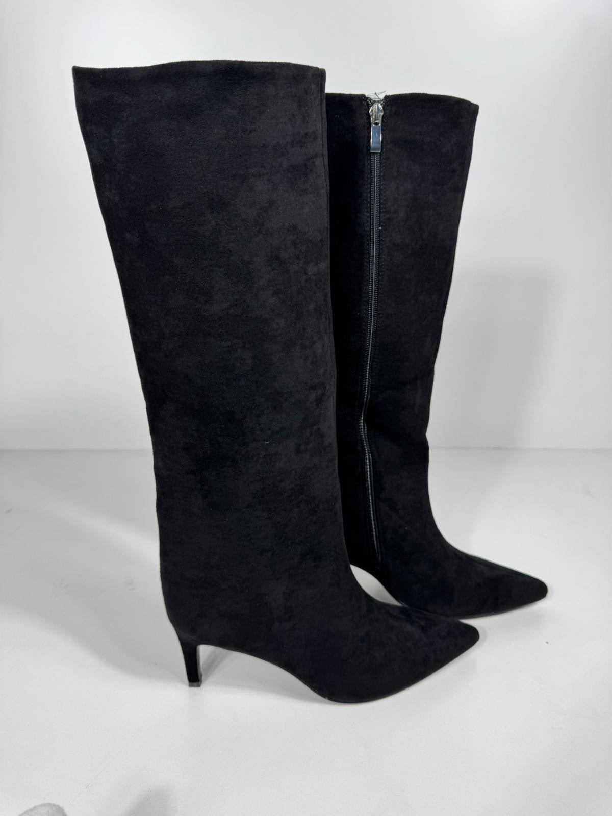 "Lo Stivale Giusy in eco camoscio è perfetto per le donne che cercano un look elegante e sostenibile. Con una comoda zip laterale e un tacco di 7cm, ti accompagnerà sia in ufficio che al di fuori. Grazie alla sua altezza sotto ginocchio, sarai sempre alla moda e comoda."