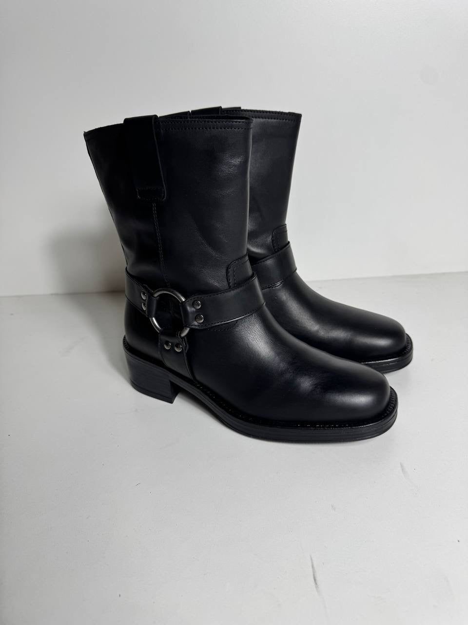 "Biker Debora in vera pelle con zip laterale. Realizza il tuo look rock con un tocco di classe e resistenza. Perfetto per valorizzare il tuo stile senza rinunciare alla comodità e all'eleganza. Scopri il piacere di indossare materiali di alta qualità e di essere sempre alla moda." (translated: "Biker Debora in real leather with side zip. Create your rock look with a touch of class and durability. Perfect for enhancing your style without sacrificing comfort and elegance. Discover the pleasure of wearing high-quality materials and always being fashionable.")