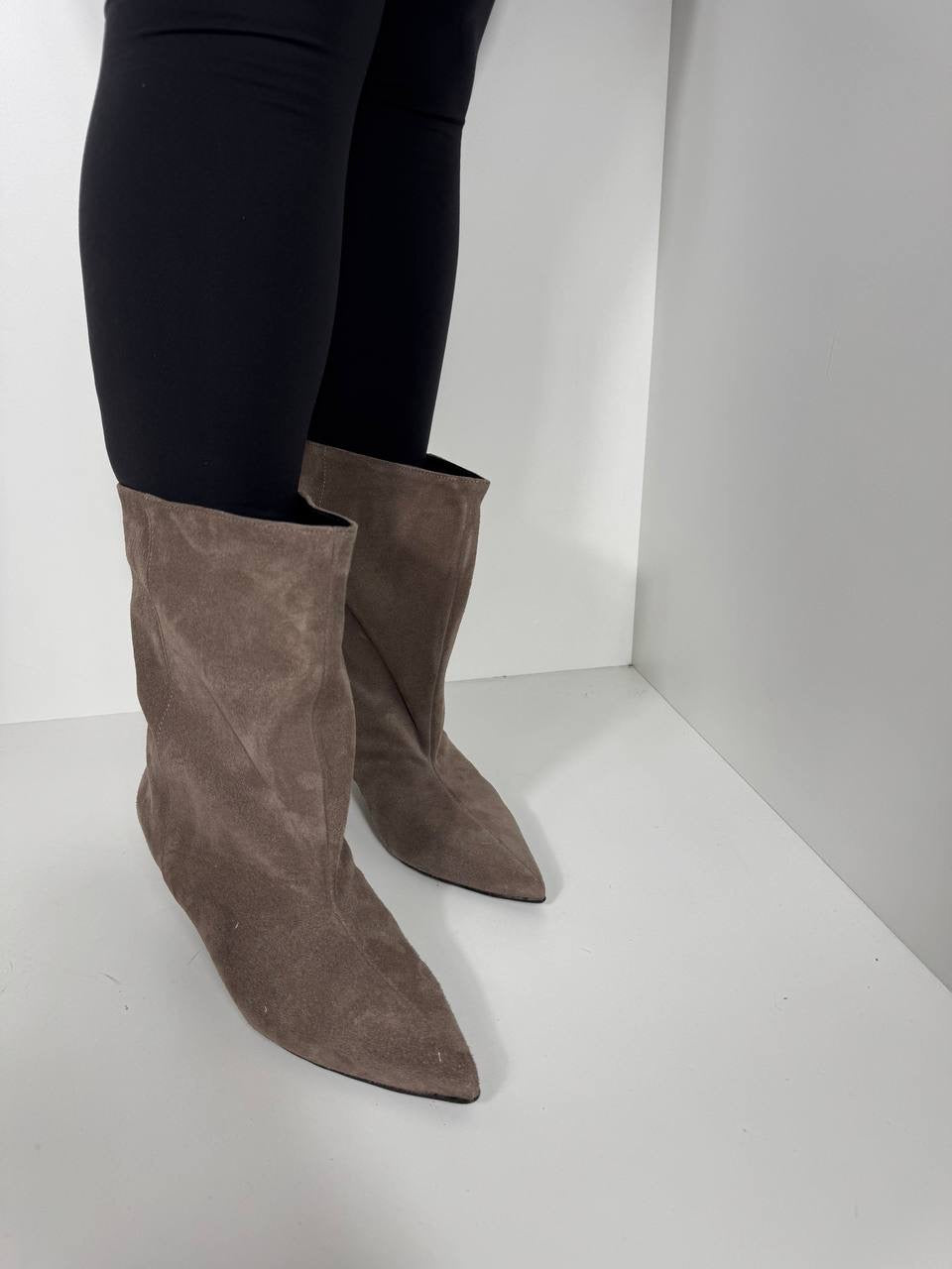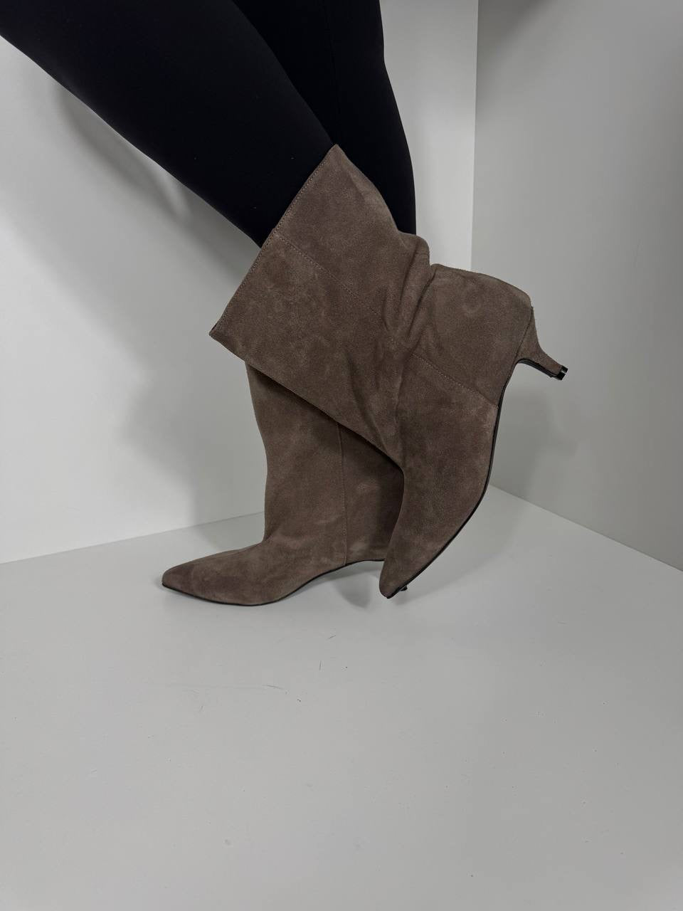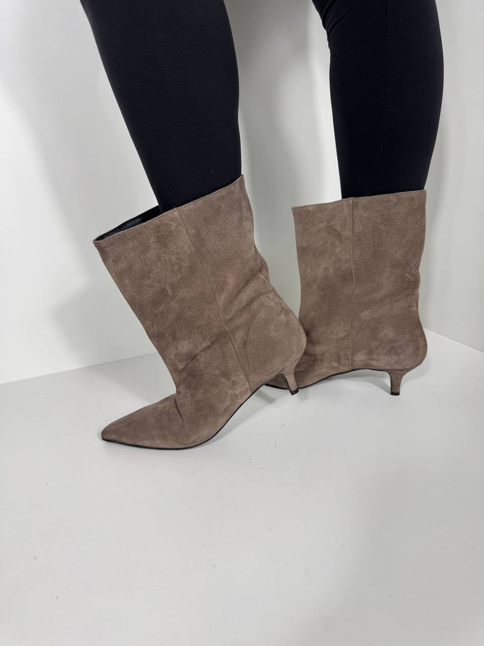 Questo Stivaletto Ginevra è realizzato in camoscio di alta qualità e presenta un tacco di 5cm per un'andatura elegante. Il gambale largo offre comfort durante tutto il giorno mentre la calzata regolare garantisce una vestibilità perfetta. Perfetto per un look chic e comodo.