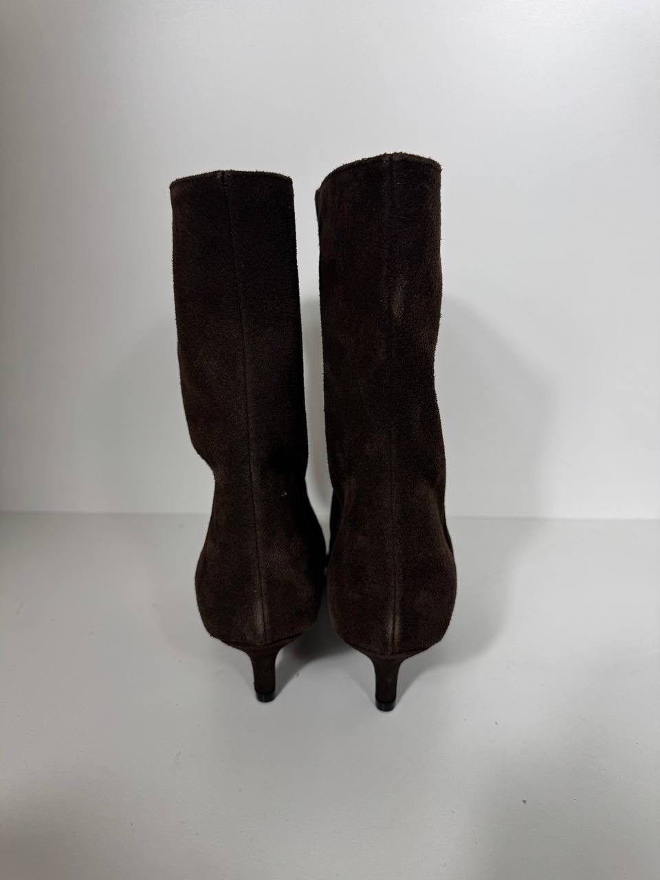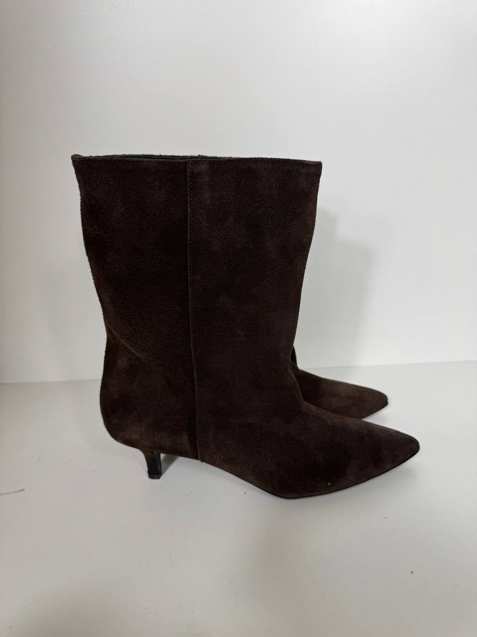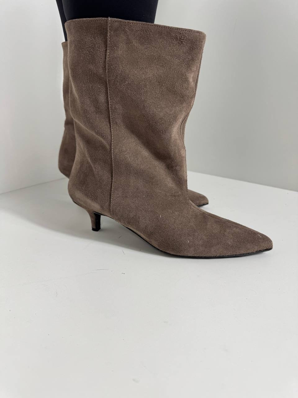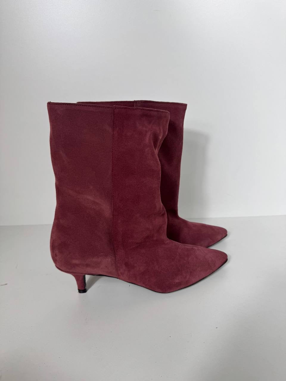 Questo Stivaletto Ginevra è realizzato in camoscio di alta qualità e presenta un tacco di 5cm per un'andatura elegante. Il gambale largo offre comfort durante tutto il giorno mentre la calzata regolare garantisce una vestibilità perfetta. Perfetto per un look chic e comodo.
